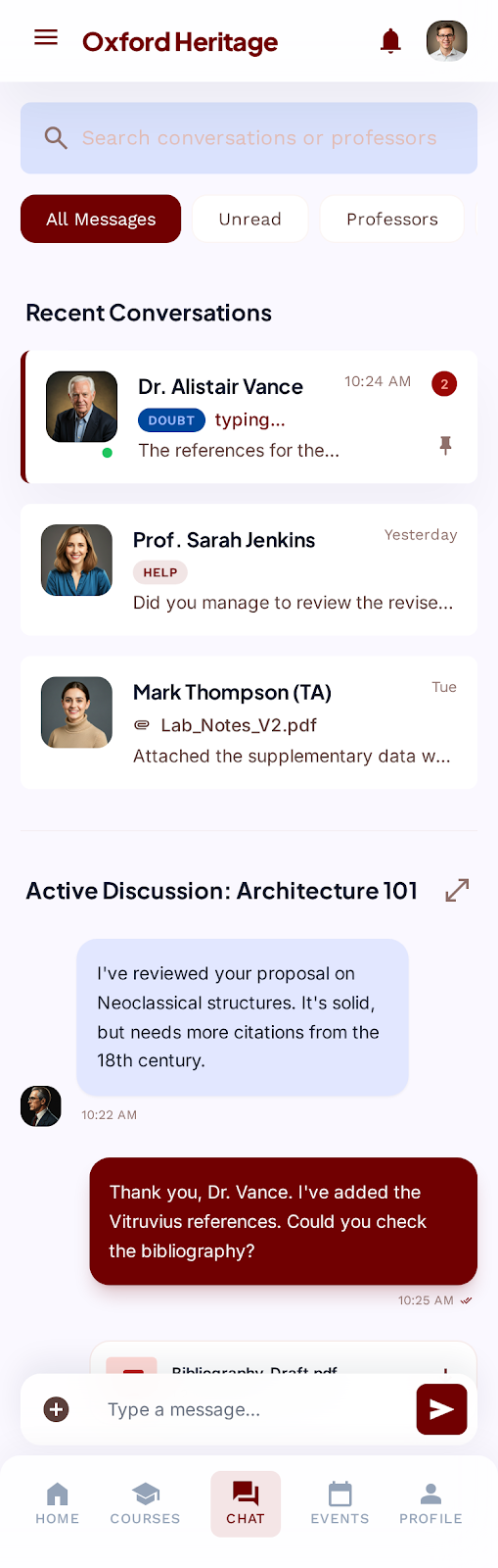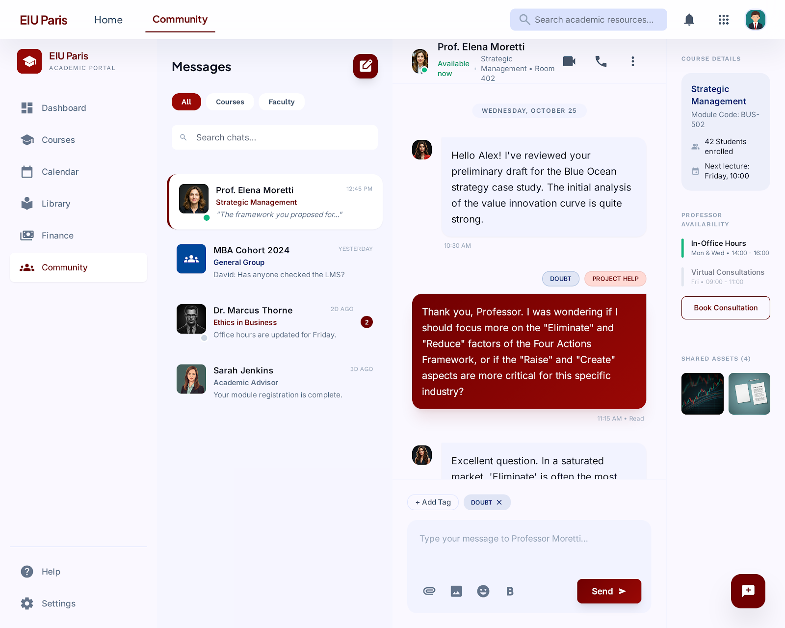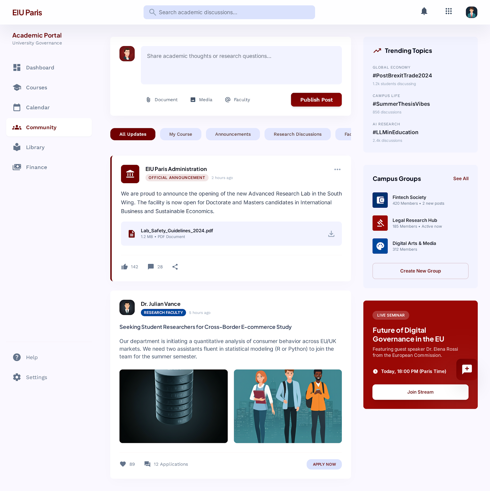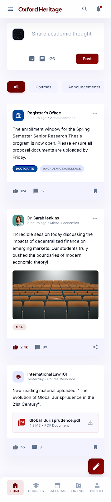 - Community: Post announcements, share academic insights, moderate discussions